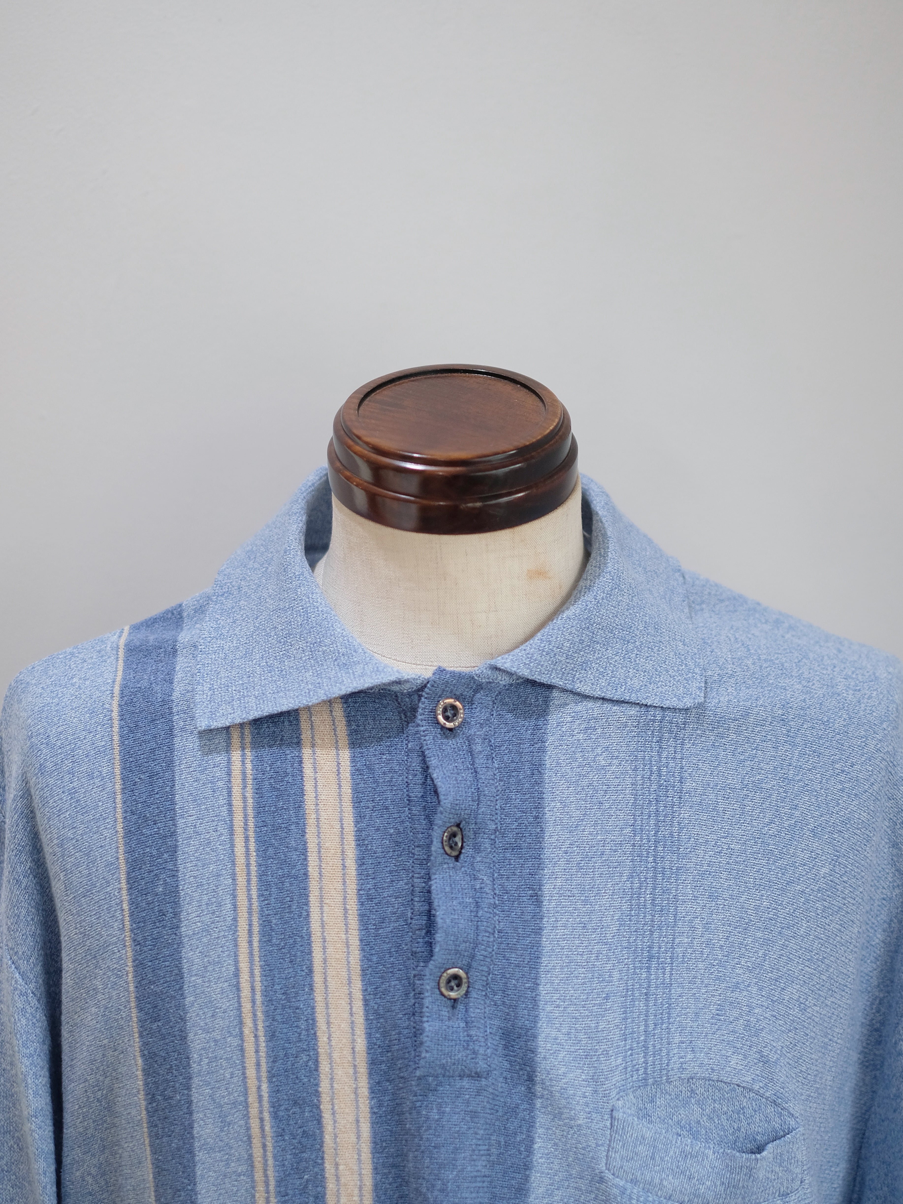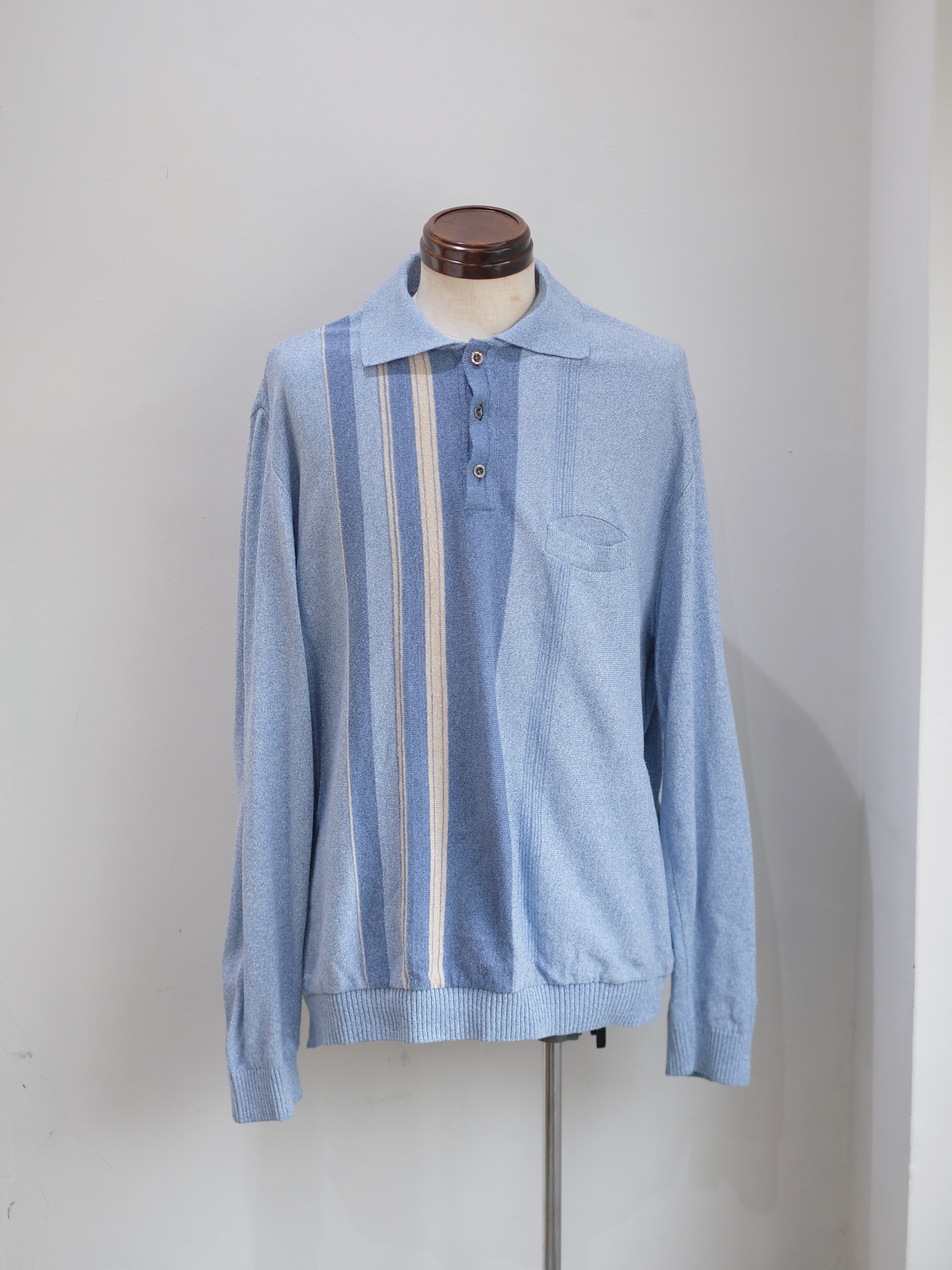 80's Dusty Blue Stripe Knit Polo